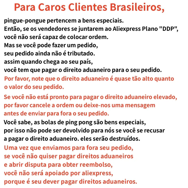 Important Notice for Brazilian Friends:: If you are not ready to pay for the high custom duty when the package arrives, please do not buy !!!