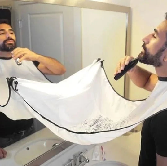 2. Just clip this ergonomic beard modification apron to your mirror and you won't have to plug the sink or get your wife's agged!
